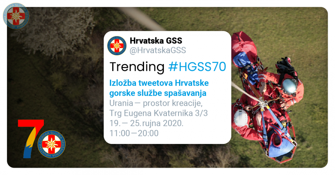 Povodom 70. obljetnice postojanja, na izložbi “Trending #HGSS70” Hrvatska gorska služba spašavanja predstavit će svoje najkreativnije objave s društvene mreže Twitter, koje su ih učinile omiljenim komunikatorom u javnome prostoru.